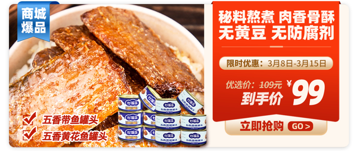 五香带鱼6罐+五香黄花鱼6罐 /99元