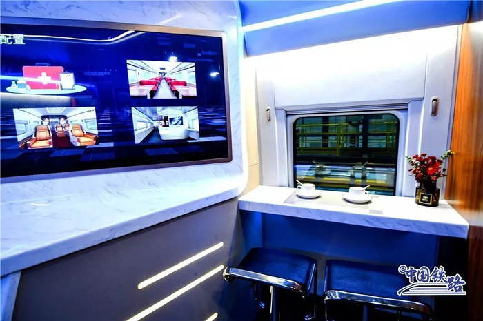 该车的智能环境感知调节技术实现温度、灯光、车窗颜色等自动调节,使旅客的乘坐体验更加舒适。
