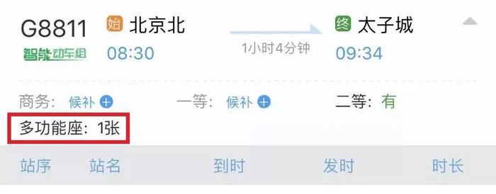 如果你在铁路12306上购买智能动车组车票,会见到一个独特的座位类型——多功能座。