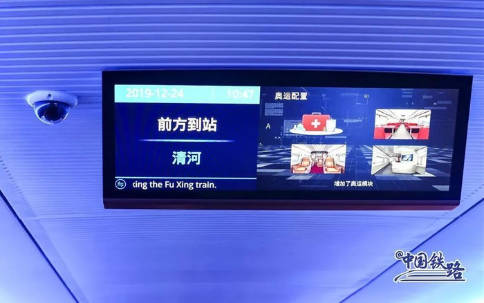 每节车厢配备了大尺寸头顶显示屏,显示屏可以分屏显示多种内容,节目播放与行车提示信息互不干扰。