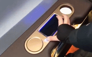 商务座配备了无线充电装置,支持无线充电功能的手机放上去可以立即进行充电,座椅还有加热和按摩等功能。