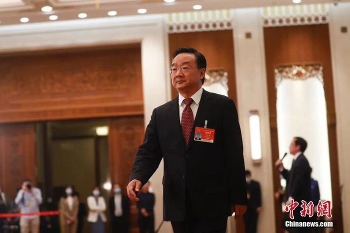 3月8日,第十三届全国人民代表大会第四次会议举行第二场“部长通道”采访活动。图为中国工业和信息化部部长肖亚庆通过网络视频方式接受采访。中新社记者 蒋启明 摄