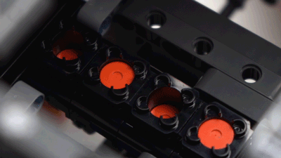 对了,除了亲手搭建的过程非常享受,他的很多内部结构也很值得把玩,特别是这个活动的4缸发动机。