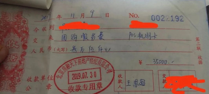 另外一名业主说,他交纳的“团购费”为4万元,房子面积与魏先生的一样。“我的房子优惠后总价为136.27万元,不交4万元就没优惠,交了钱只给了收据,没有发票,‘团购费’也不计入合同的房款总价中。当时我问置业顾问为什么收据上的章不是首创的,他们说开收据的公司是他们合作的公司。”