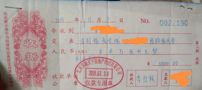 业主拿到的收据