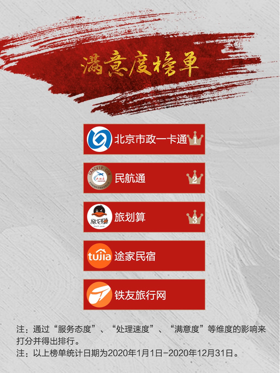 黑猫投诉平台重磅发布2020年度旅游出行住宿行业年度红黑榜。旅游出行住宿行业年度红黑榜包括了“红榜年度榜单”、“黑榜年度榜单”、“满意度榜单”三大榜单,从传统排行榜概览性评选拓展到了多个细分维度、层面,对商家的整体售后质量进行了更为准确和细致的梳理。更加全面的盘点了旅游出行住宿各个商家2020年在黑猫平台的整体投诉及处理情况,助力广大消费者了解商家信誉详情、促进消费市场提高整体服务水平。