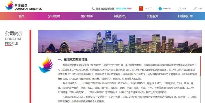 东海航空官网截图。