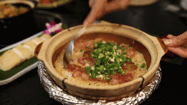 被煲得晶莹剔透的油脂,层层渗透到饱满的米粒中,咬一口,浓郁的肉汁,在嘴里热腾腾的爆开,香味扑鼻。