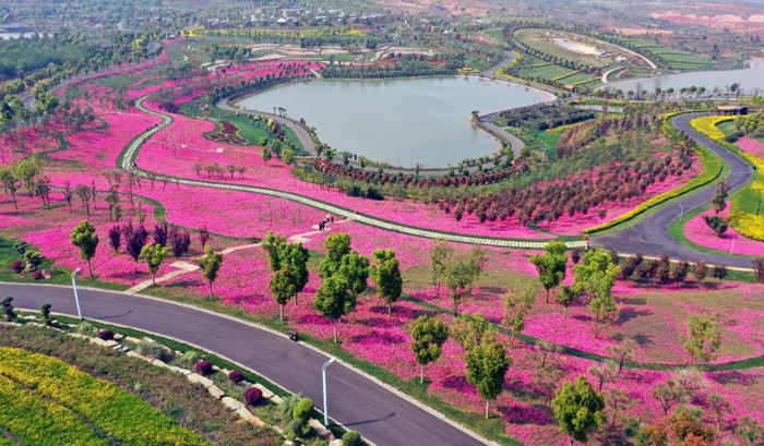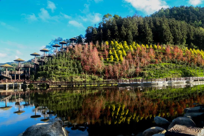 绿树成荫,花海绚烂,自然山水景观和多层次地形地貌融合……2020年8月,红河州弥勒市太平湖森林小镇的山地石漠化公园正式开放,旋即成为“网红打卡地”。
