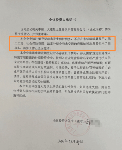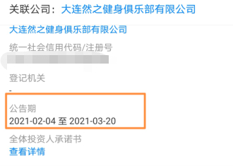 记者通过天眼查查询发现,事实上,大连然之健身俱乐部有限公司在2月4日已经向登记机关提交了简易注销申请,韩先生办理年卡时,该俱乐部正处于注销公告期内。
