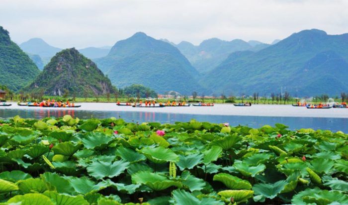 去年12月,文山普者黑由国家4A级景区升级为国家5A级景区。不用出省,你就能游览到世界级的喀斯特山水田园。