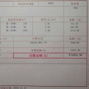 然而,去年12月,陈先生在回老屋查看后发现,家门口贴着一张水费催缴单,这让他十分疑惑。“6年多了,家里一直没人,怎么可能产生水费呢?”待他仔细一看,让他差点惊掉了下巴。水费单上标明,家中用水量为1862立方米,应缴水费高达10251元!