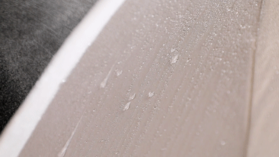 可以看到水雾碰到伞面后,全部聚成了圆润的水滴而不是摊成一片,说明伞面疏水性能非常不错。