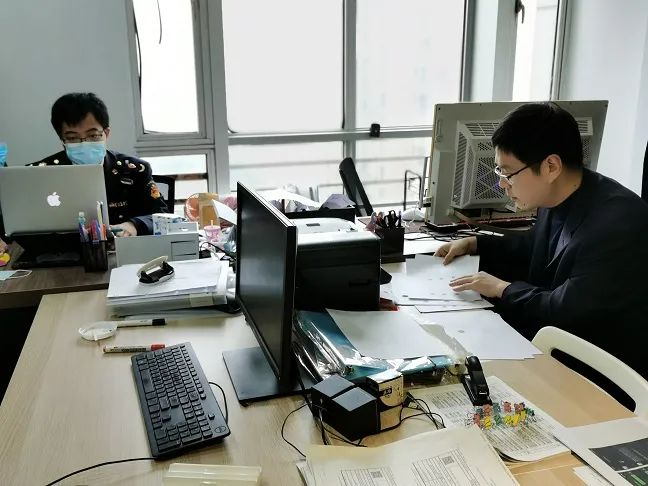 在共和新路一家商务楼中,执法人员进入一家企业,现场调取涉案公司的工作群聊天记录,查阅相关代运营合同协议、刷单需求表、虚假销售单等。