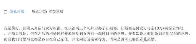 彩礼一般是在订立婚约时给付,彩礼的给付是为了双方缔结婚姻,订婚宴支付女方母亲10万元以及黄金首饰符合彩礼的性质。赠与彩礼与普通的赠与行为并不完全相同,给付彩礼的行为可以视为以结婚为生效条件的附条件赠与行为。尽管你们双方已经办理了结婚登记,但《最高人民法院关于适用<中华人民共和国民法典>婚姻家庭编的解释(一)》第五条明确规定了已办理结婚登记仍可要求返还彩礼的情形,即双方办理结婚登记手续但未共同生活的,或婚前给付并导致给付人生活困难的。要注意,这两种情形返还彩礼必须以离婚为前提条件。