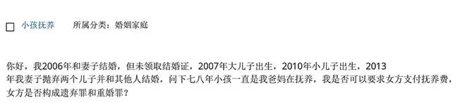 其次,根据你的描述,难以认定女方构成遗弃罪和重婚罪。根据《刑法》第二百六十一条的规定,遗弃罪的成立条件之一,需要有力的证据证明女方对未成年两个儿子存在拒绝扶养、情节恶劣的行为,而根据你的描述,女方仅是抛弃两个儿子和其他人结婚,并未达到情节恶劣的程度;另根据《刑法》第二百五十八条的规定,一般认定重婚罪需要满足前婚属于合法婚姻的条件,即经过合法结婚登记手续,办理结婚证的婚姻,而你与女方之间并没有领取结婚证,没有形成合法的婚姻关系。因此,女方难以构成遗弃罪和重婚罪。