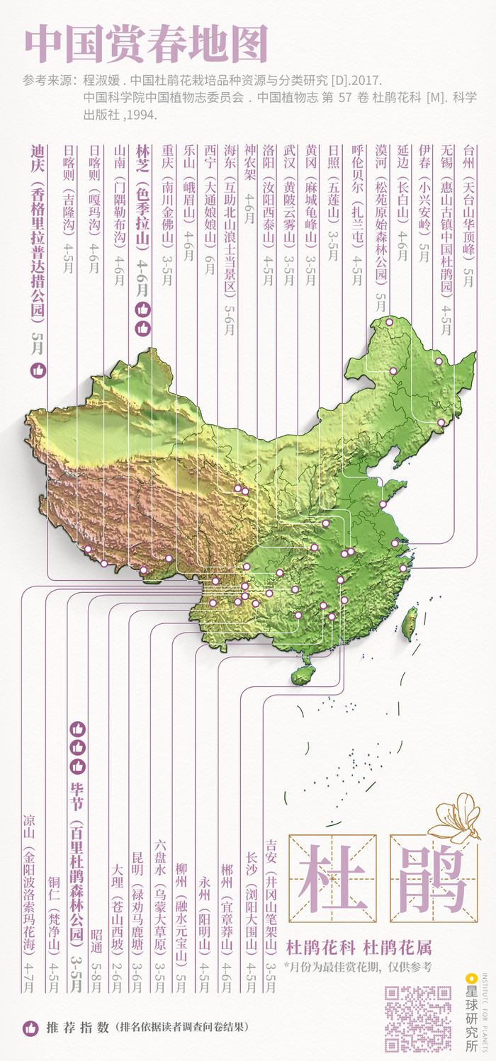 (中国赏春地图⎜杜鹃,制图@郑艺&郑伯容/星球研究所)