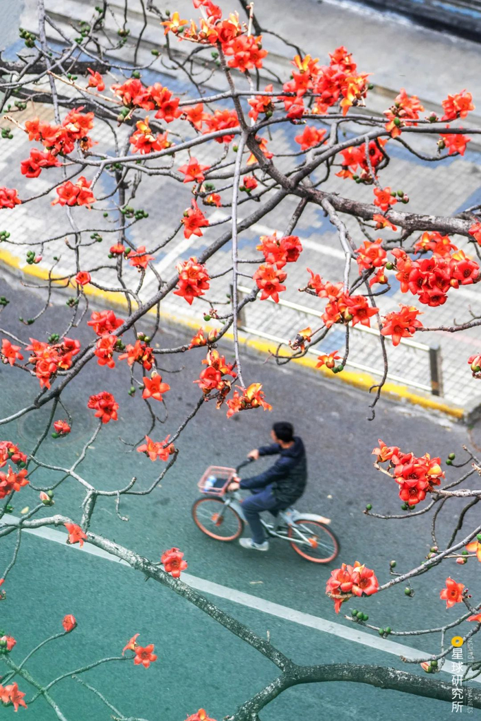 (出自明朝王邦畿(jī)的《咏木棉花》,图中为广州路边的木棉花盛开,摄影师@冯健文)