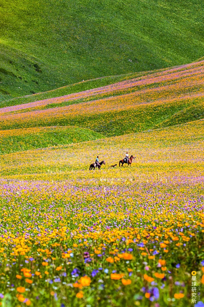 (出自唐朝杜甫的《绝句二首 其一》,图中为新疆班禅沟各种植物相继开花,摄影师@姚璐)