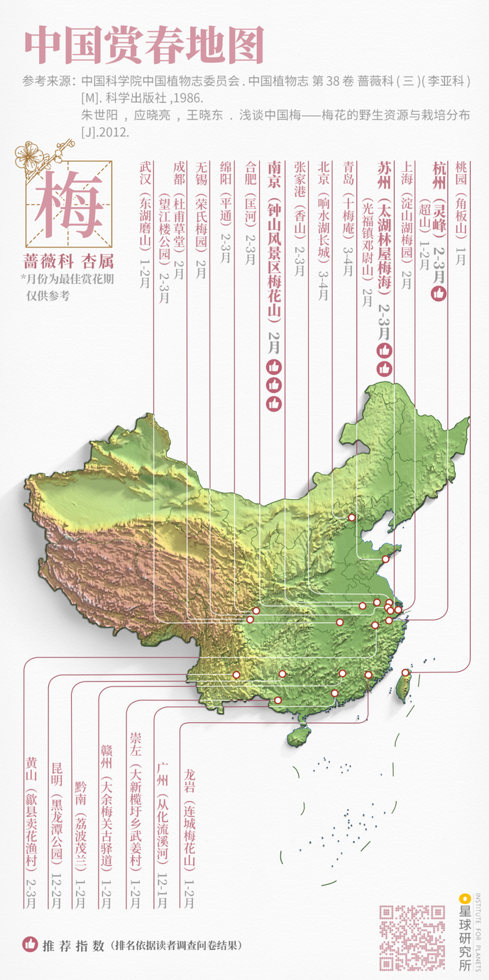(中国赏春地图⎜梅,制图@郑艺&郑伯容/星球研究所)