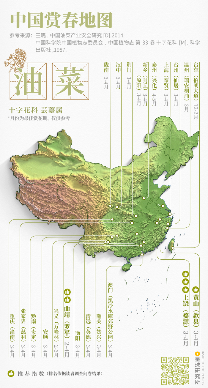 (中国赏春地图⎜油菜,制图@郑艺&郑伯容/星球研究所)
