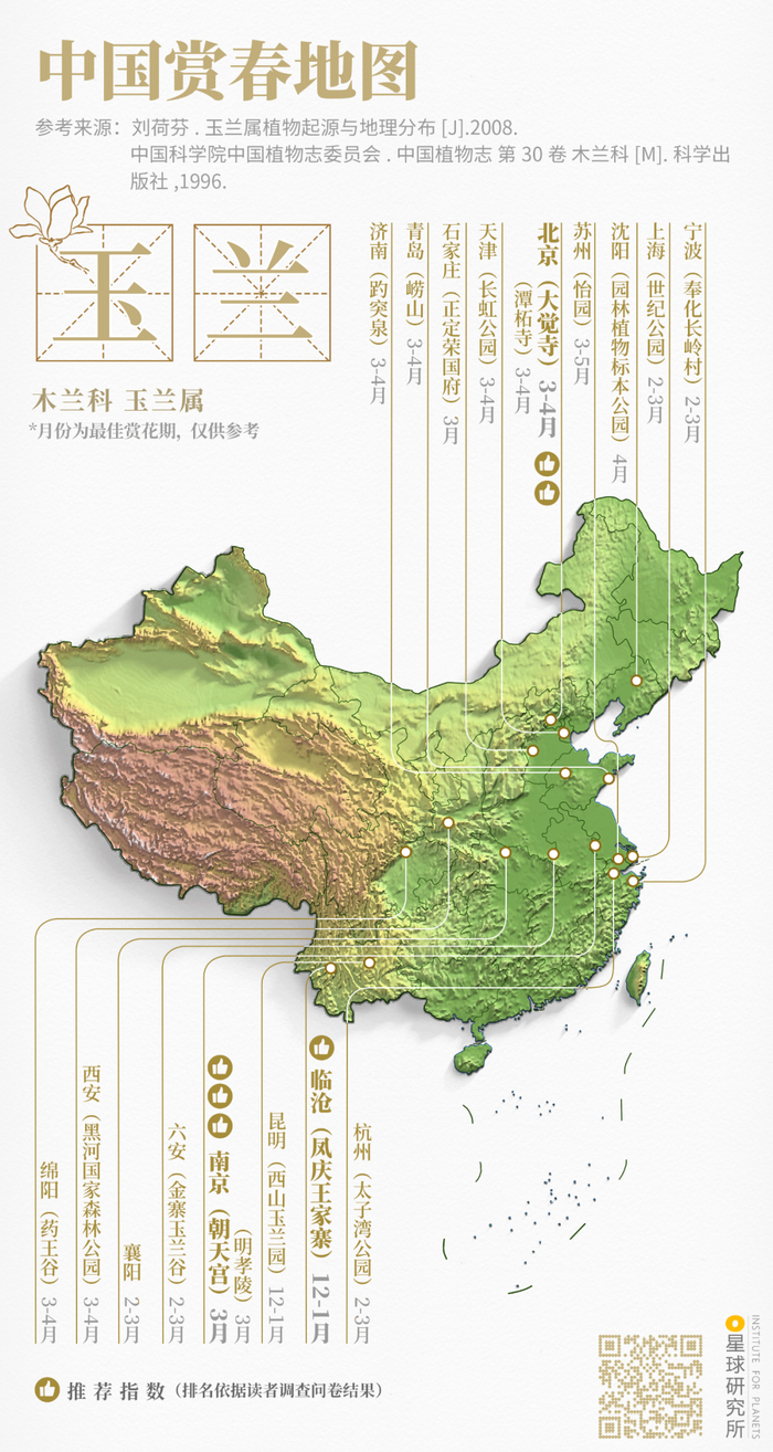 (中国赏春地图⎜玉兰,制图@郑艺&郑伯容/星球研究所)