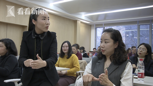 课堂上,来自上海大学中国手语及聋人研究中心的手语翻译员唐文妍精心准备了国歌歌词幻灯片以及国歌标准手语视频等学习资料,针对聋哑人的特点,逐字逐句地向在座的学员们熟悉手语动作。