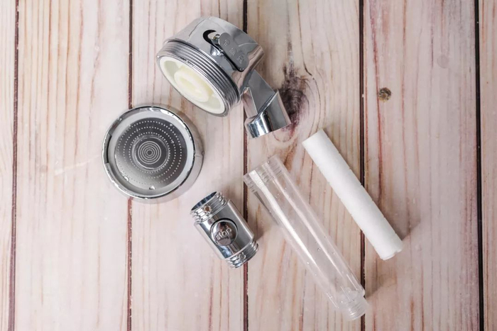 但是这个美容花洒可能上辈子是个变形金刚吧,全身上下都可拆卸。