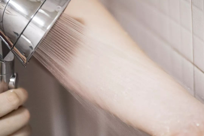 胳臂上抹了超难洗的清洁面膜,普通花洒喷上去,就和没喷一样。