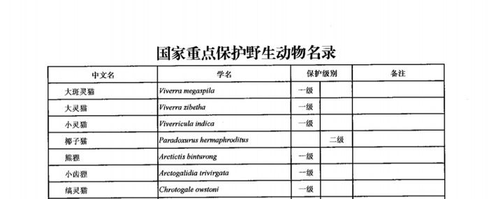 国家一级保护动物小灵猫
