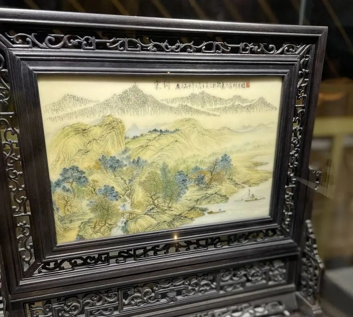 环顾四周安放在玻璃罩子里的艺术品,例如王芝文镌刻的看似山水画的《宋词》——其实远山是由宋词字句构成,这才意识到身在人间,看此作品,值得。