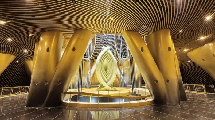人人都知道“上海之巅”就是上海中心的别称,人人知道上海中心观光厅,但不是人人都知道上海中心其实是有灵魂的文化空间。阻尼器不是每一幢超高层建筑都装,在阻尼器上创造一个艺术空间,更是上海中心的首创——把平常黑漆漆的设备层,点化为“巅峰艺术空间”,花费了四五年的时间。这是上海中心管理设计团队的一片慧心。
