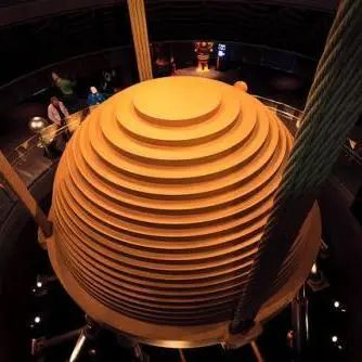 台北101就在88楼至92楼,挂了一个重达660吨的巨大钢球,利用钢球摆动产生的“反作用力”来平衡台风带给建筑的“作用力”。