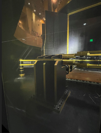 在放下手的刹那,对面的屏幕忽然消失——变成全透明的玻璃,骤然发现玻璃后就是上海中心的阻尼器,也就是“上海慧眼”底座下的“奥秘”……