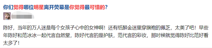 知乎上有这样一个问题:哪位明星离开荧幕,让你觉得最可惜?