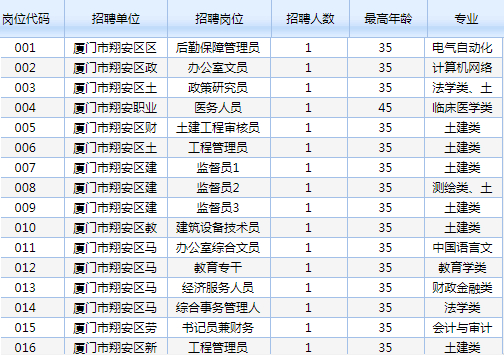 厦门市翔安区所属事业单位补充编内工作人员22名