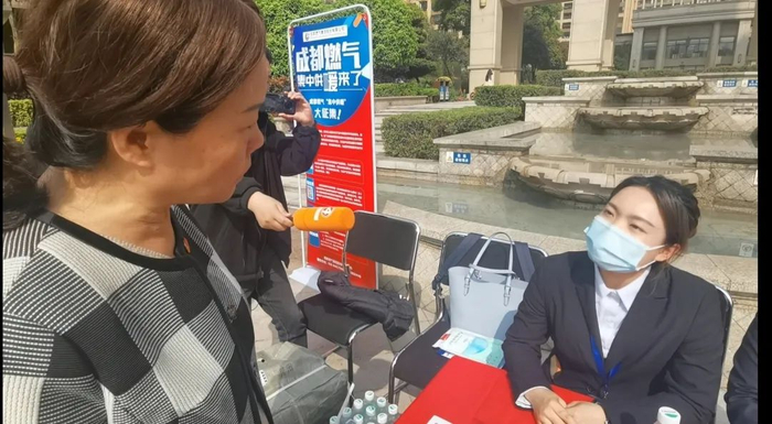 近日,成都燃气公司正式推出“集中供暖”安装服务,目前正面向市民征集安装意愿,3月15日上午,在正在征集意见的成都市九龙仓御园小区,前来咨询的居民络绎不绝。而针对市民最关注的一些问题,成都燃气公司相关工作人员也一一给出了回复。
