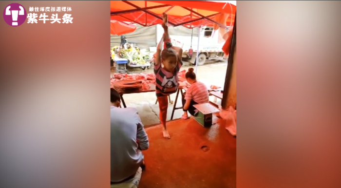 “我们一般是早上6点前到铺子里开门卖肉,小云儿很小的时候就一直跟着我在店里,等到中午没什么顾客的时候,她就会在铺子里看视频学跳舞。”李兴巧告诉紫牛新闻记者,小云儿是她的大女儿,全名叫邬刚云。小云儿6岁时,李兴巧发现孩子一看到跳舞的视频就会十分感兴趣,并且跟着视频里面的人学着跳舞。