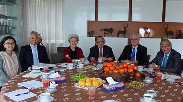 8月10-11日,菲律宾前总统拉莫斯(中)在香港与傅莹(左三)、中国南海研究院院长吴士存(左二)进行友好会面 图自中新社