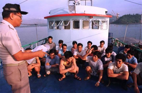 1997年5月20日,菲律宾巡逻艇在黄岩岛附近扣押21名中国渔民,船长和机修工随后被带到菲律宾苏比克市关押 图自WorldPress“讨论南海”论坛