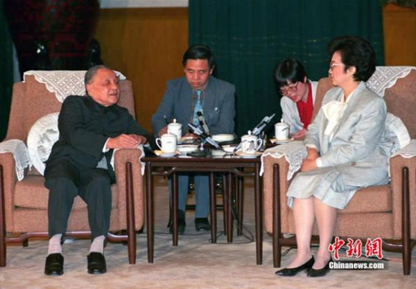 1988年4月16日上午,中央军委主席邓小平会见科·阿基诺总统(中新社 任晨鸣 摄)