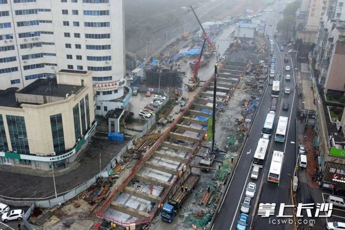 3月16日,长沙地铁6号线六沟垅站主体结构顺利封顶,标志着长沙地铁6号线河西段14座车站均已实现封顶。均为长沙晚报全媒体记者 王志伟 摄