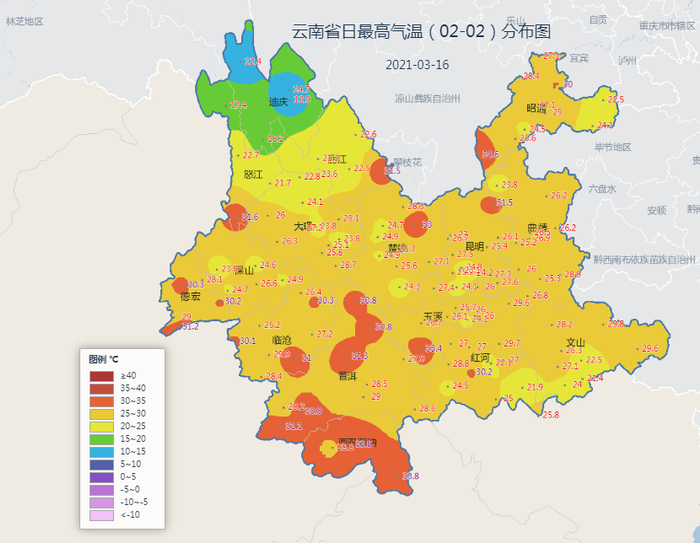 进入阳春三月,由于降水较少,受干暖气流控制,云南各地气温持续上扬。昆明午后的街头,年轻人们已是短袖、夏裙上阵,好一派夏日的风景。气象监测数据显示:3月上旬云南30度以上高温保持个位数,12号开始迅速突破10;13号和15号30-35度高温更是达到了20站次。高温区主要分布在干热河谷地带,三元之首的元江一直稳居云南高温霸主地位。