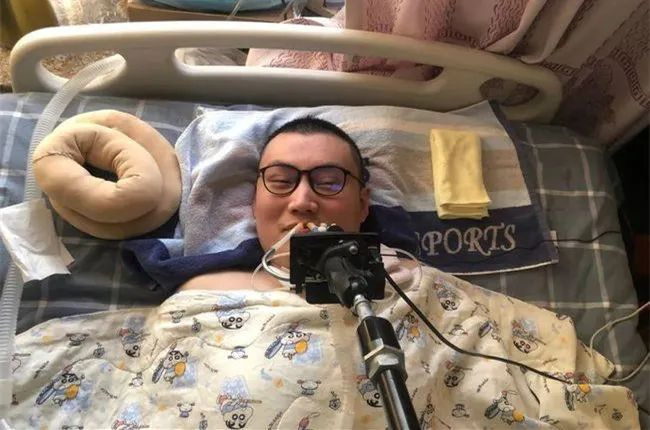 2013年,在一次消防演练中,22岁的消防员朱铭骏从2米高的双杠上意外摔下,后颈着地导致高位截瘫无法自主呼吸。后来医生在他的脖子上开了个孔,安装上一根塑料管,管子的另一头插在一台呼吸机上,就这样,他继续活了下来。
