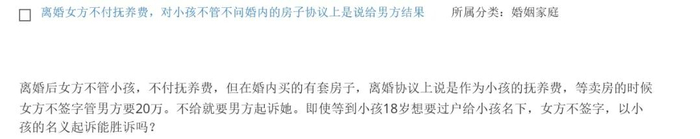 离婚后女方不管小孩,不付抚养费,但是两人在婚内买了套房子,离婚协议上说是作为小孩的抚养费。卖房的时候女方却不签字,并且管男方要20万,女方表示不给钱就不配合处理房产。如果等到孩子18岁,把房子过户给小孩名下,女方还是不签字,以小孩的名义起诉能胜诉吗?