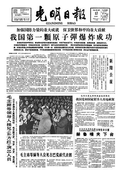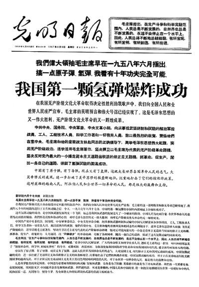 《光明日报》关于“两弹一星”的头版报道