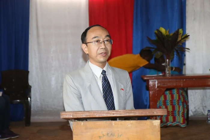 近日,驻利比里亚大使任义生应邀出席马吉比州卡卡塔市社区图书馆及科学实验室项目启动仪式,卡卡塔市长戈尔、利政府及社会团体代表和驻利使团代表等出席活动。