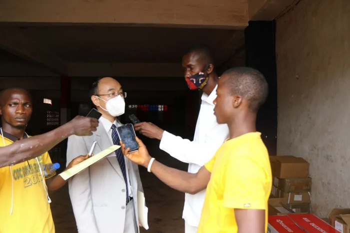 任大使代表使馆向图书馆和实验室捐赠了一批办公用品和数百册图书,并接受了当地媒体采访。