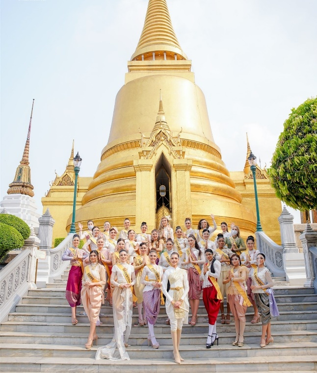 2020年万国小姐选美比赛决赛将于当地时间3月27日在曼谷举行,经过层层选拔的63个国家的佳丽赴泰国参加决赛。当地时间17日,结束了14天防疫隔离的各国佳丽身穿泰国传统服装来到曼谷大王宫留影。