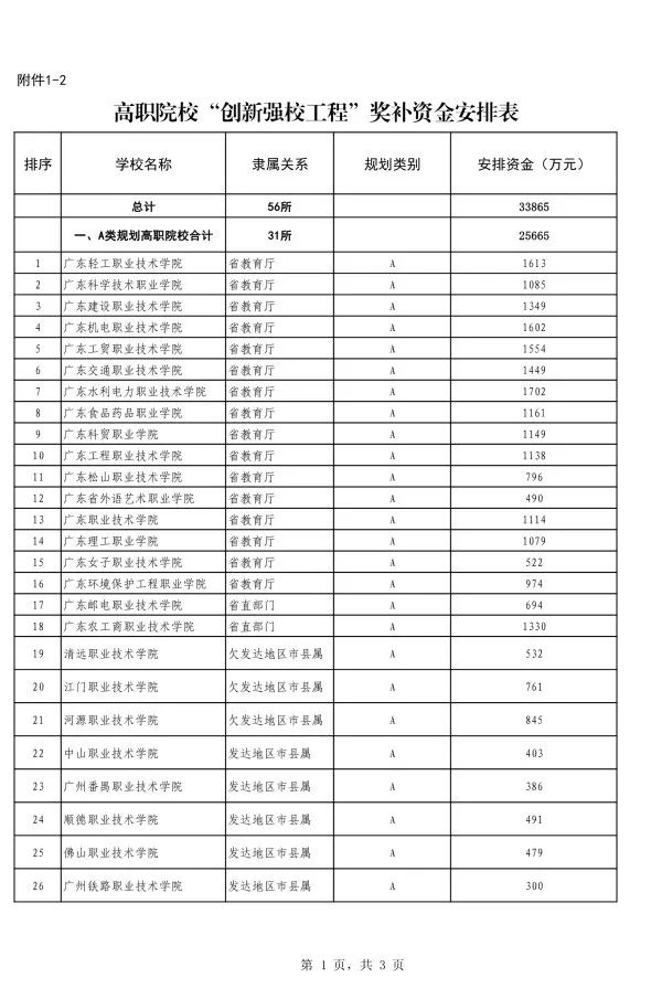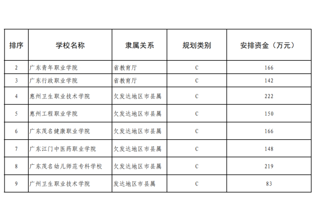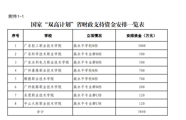 ● 广东轻工职业技术学院,安排资金3000万元
